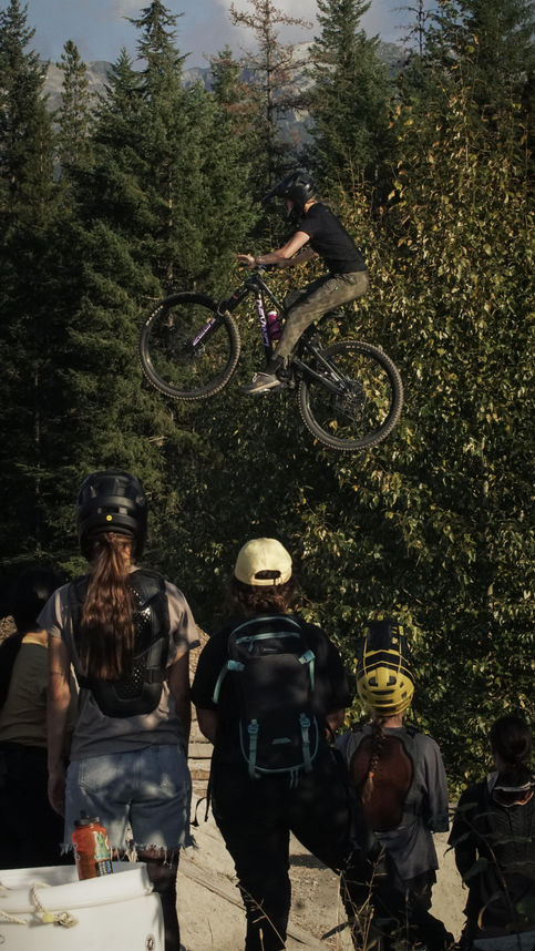 I organize community events for women in Whistler called “Whistler SendHers” (IG:whistlersendhers or click the other tab on this website for more info). Our mission is to get more women on bikes in a safe, inclusive and fun environment. The current formula: we jump, chat, share tips, then we do some giveaways. In 2025, we’ve done 4 jump jams at Nesters step up and 1 evening in Whistler Bike Park (lots more to come next summer!!).